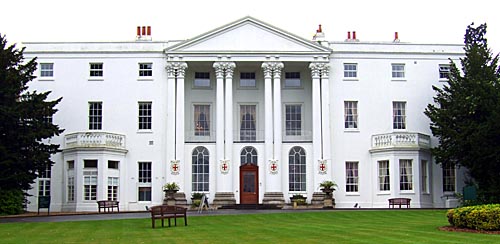 LodgeOld Windsor, Berkshire Beaumont Lodge can be found south of Old Windsor outside the Great Park near the border with Surrey. The original house was built for Lord Weymouth as 'Bowmans Lodge' in 91 acres of land. Warren Hastings (1732-1818), Governor-General of India, bought the property in 1786 and lived there while on trial for alleged corruption. The property was then purchased by Henry Griffiths who had Henry Emlyn rebuild it in 1790 as a nine-bay mansion with a enormous portico with columns in beech tree style. The estate was bought by the Society of Jesus in 1854 for novices and became their Roman Catholic college in 1861. Ranges were added between 1865 and 1870 and the chapel dedicated to St. Stanislaus was built in 1870. On the terraces, stands a vast open air altar and Calvary. Beaumont Lodge is now as a management training centre.