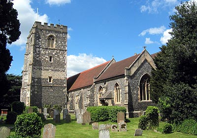 BraySt. Michael's Church The present parish church at Bray was built to replace a previous Saxon building around 1294. The old church is said to have stood some way outside the main village at Water Oakley. The villagers weren't best pleased by the long walk and tore it down. Everyone had to contribute to the rebuilding, but some were reluctant to pay up and the beadle had to be sent in to sort the situation out. A more romantic tale tells of demons destroying the old church in at the dead of night! Today only a few odd carvings brought from the old building remain: A dog (or a horse?) is built into the outer wall of the Chantry Chapel of Our Lady in the churchyard and an unusual 'Sheela-Na-Gig' sits high up between the church's rafters. This latter is a pre-Christian fertility symbol, often found in Ireland, showing a female figure proudly displaying her nether regions. It was meant to remind the faithful of the sinful pagan rights from which they had escaped. The church was, of course, originally constructed in the Early English style, but it was given many perpendicular additions and alterations in the early 14th century - including the fine tower. It is a surprisingly large building for a small village, but this reflects the size of the parish which covers many manors and associated hamlets scattered throughout Windsor Forest. The lords of these manors made great patrons and this can be seen in the many monuments and memorial chapels throughout the church. The Foxley Chapel (of All Saints) stood at the east end of the South Aisle and it was from here that the superb superb brass to Sir John Foxley and his two wives came (1378) . John lived at the moated manor house at nearby Foxley Green (Touchen End), but also held a small castle at Bramshill just over the Hampshire border. His first wife (with the heraldic lion decorating her dress) was the daughter of Sir John and sister of Sir Bernard Brocas of Clewer, the great friend of the Black Prince. His second wife was apparently of low birth as she has only her husband's arms on her dress. Several generations of the family were Constables of Windsor Castle, including their son and Sir John's father. Both were called Thomas and had their own brasses in the church, which have, sadly, disappeared. Although the indent of the later one (1436) survives in the porch and the inscription was recorded a couple of centuries ago. The opposing chapel in the North Aisle was the Norreys Chapel (of St. Nicholas). Interestingly, it was adopted by both local branches of the Norreys family who thought they were closely related - but weren't. Sir John Norreys directed in his will (1466) that he should be buried in a marble tomb tomb here, though this no longer exists. Quite a celebrity at Court, when not in London attending King Henry VI (or Edward IV depending who was in power), he lived at the magnificent Ockwells Manor at Cox Green. Most of the other Norreys interred here, came from Fifield Manor, elsewhere in the parish. Most notable is the black marble wall monument to Sir William Norreys KG. Like the chapel in the churchyard, these were both chantry chapels kept up by family bequests which paid for a private priest to pray for the souls of the dead. From 1448, one of them lived in the little cottage built over the lychgate; but the practice was abolished during the Reformation. Other fascinating memorials, include a local fifteenth century Justice of the King's Bench, William Laken, in brass and the beautiful demi-figures of William Goddard and his wife. In 1609, the latter founded the Jesus Hospital in the village, where another figure of him may be seen. But underneath the central portion of the nave is said to be buried Bray's most famous resident, Simon Alleyn, the so-called 'Singing-Vicar'. This famous Vicar of Bray had a well-known ballad written about him in which he promised to stick to his principles: no matter what religious denomination he had to adopt, he would always remain, 'the Vicar of Bray, Sir'. The poem itself suggests a man living through the troubled years of the late 17th century, but the story is known to be much older and probably refers to the even more turbulent times of the Reformation. Hence Alleyn, who was vicar from 1523 to 1565, is thought to be the man in question. |