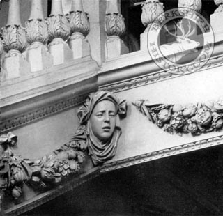 pediment with a swag clumsily shooting out of its whorled ends. Hence